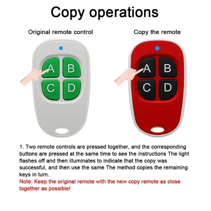 Universal 433 Mhz Wireless Clone Switch, 2-Button Gate Garage Door Control, Duplicator Remote Control Key, Lithium Button Cell Battery, Garage Door Opener
