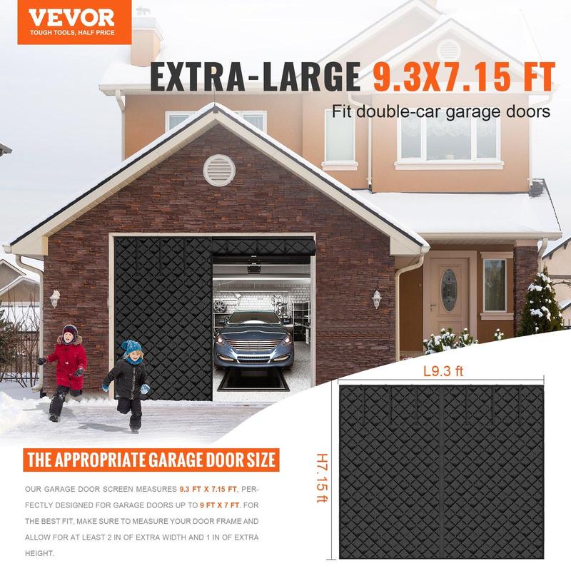 ·Thermal Insulated Garage Door Curtain: Our garage door insulation kit measures 9.28 x 7.15 ft, fitting garage doors up to 9.02 x 7.02 ft. Ideal for not just garages, but also front doors, back doors, patio entrances, porches, balconies, etc. Tips: Please measure your door size accurately and allow extra length and width for the door frame.
