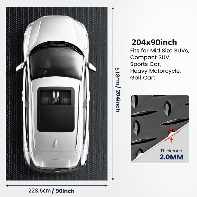·【Enhanced Durability & Thickened Protection】 With a 2mm thickness that is 30% thicker than standard mats, this PVC garage floor mat resists cracking under heavy loads like SUVs, sports cars, and motorcycles, ensuring long-lasting performance in extreme temperatures without replacement. Ideal for garage floor protection against wear and tear.