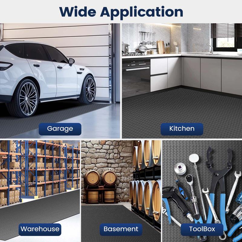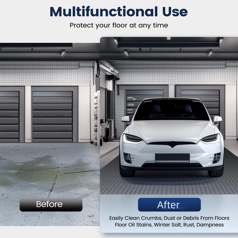 ·【Easy Cleaning & Multi-Surface Protection】 Maintain your garage mat effortlessly with a vacuum, broom, dry mop, or hose—no removal needed. It effectively guards against oil stains, rust, moisture, and winter salts, keeping floors pristine and reducing maintenance time.