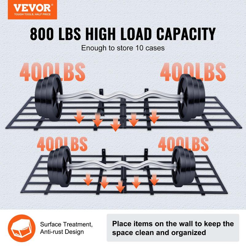 • 800 lbs High Load Capacity: Our garage wall shelving is made of high-quality metal, weighing 40.79 lbs. Each shelf has a maximum load capacity of 800 lbs, making it convenient for hanging tools. Installation Hole Spacing: 18 inches.