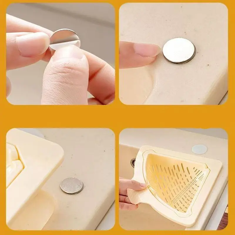 Kitchen Magnetic Garbage Filter, Triangle Drain Basket, Suitable for Right Angle Iron Vegetable Basin, Kitchen Filtering Net, Shelf Water Tray