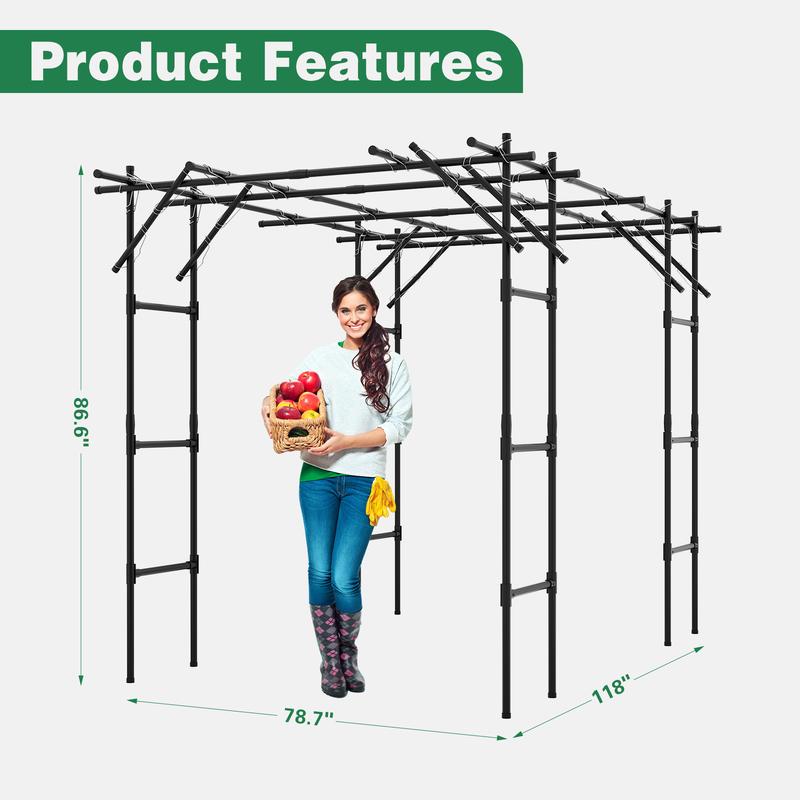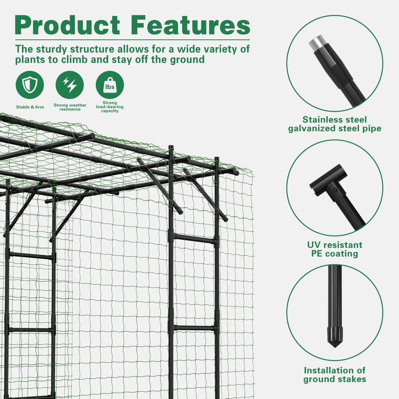 🍇「LARGE GARDEN TRELLIS」- This garden arch trellis with an arched structure measures 87" H x 118" L x 79" W, designed specifically for growing climbing plants and vegetables. It can provide ample growing space so that you can maximize your harvest and yield. At the same time, it can also become an attractive archway for climbing plants to create a beautiful entry into your garden.