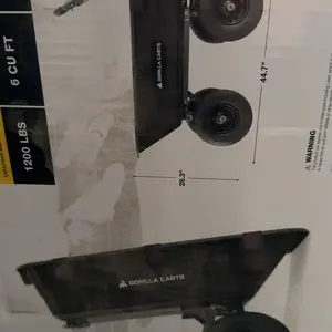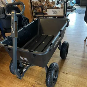 Haul up to 1,200 pounds with the Gorilla Carts Poly Yard Dump Cart. Featuring a 40" x 25.6" bed, 13" pneumatic tires, and a durable steel frame, this cart ensures smooth maneuvering over various terrains. The quick-release dumping system and tight-turn steering make unloading and handling easy. Ideal for gardening, landscaping, or transporting heavy items around your yard or farm.