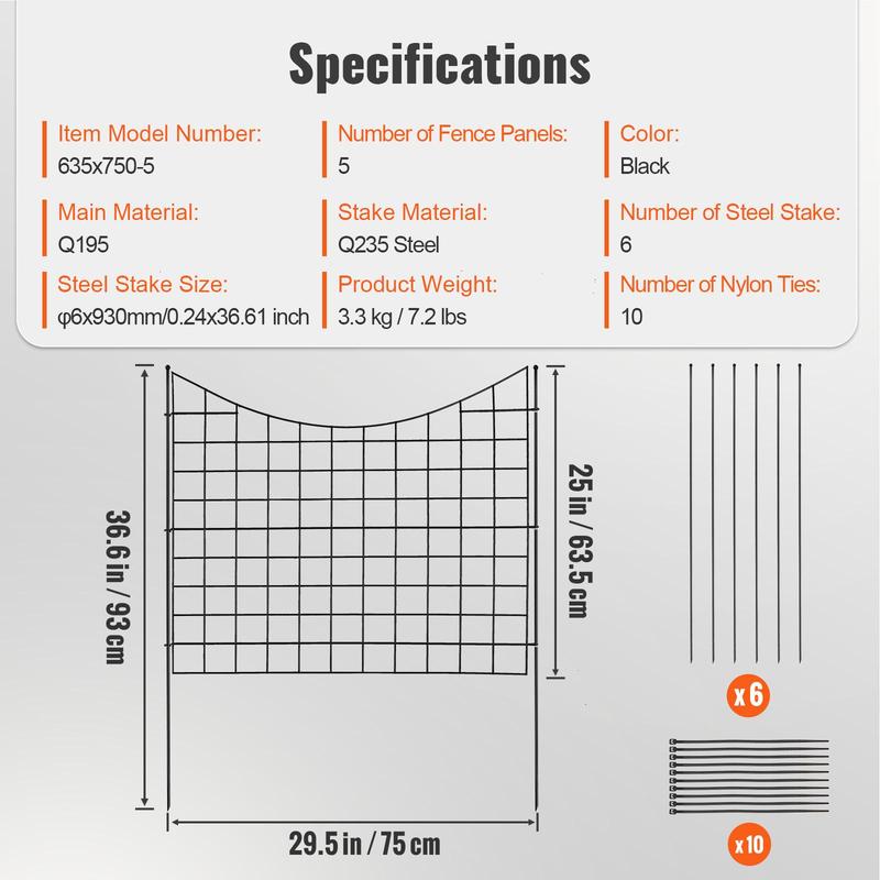 5. VEVOR Garden Fence, TikTokShopBlackFriday, 36.6in(H) x12ft(L) Animal Barrier Fence, Underground Decorative Garden Fencing with 2.5 Inch Spike Spacing, Metal Dog Fence for the Yard and Outdoor Patio, 5 Pack