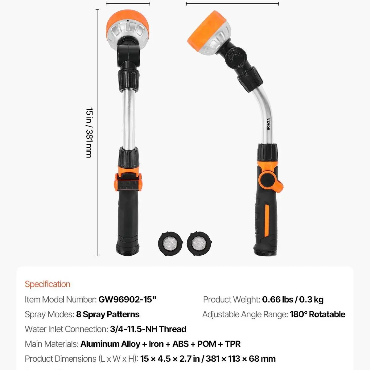 ·Durable Construction: This 15-inch long watering wand offers excellent reach, allowing you to water high or deep areas with ease. Made of premium aluminum alloy and rubber, it’s built to last and provides a comfortable grip, making it perfect for extended use. Tough yet lightweight for all your outdoor tasks.