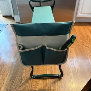 I just unpack my order that came very fast, It’s nice and comfortable it feels very sturdy and I like the pouch to store my gardening supplies in I can’t wait to use it in my yard.