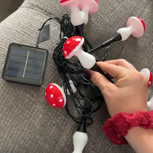 So adorable! These little solar lights have a long cord that runs to the solar base and has multiple different modes.