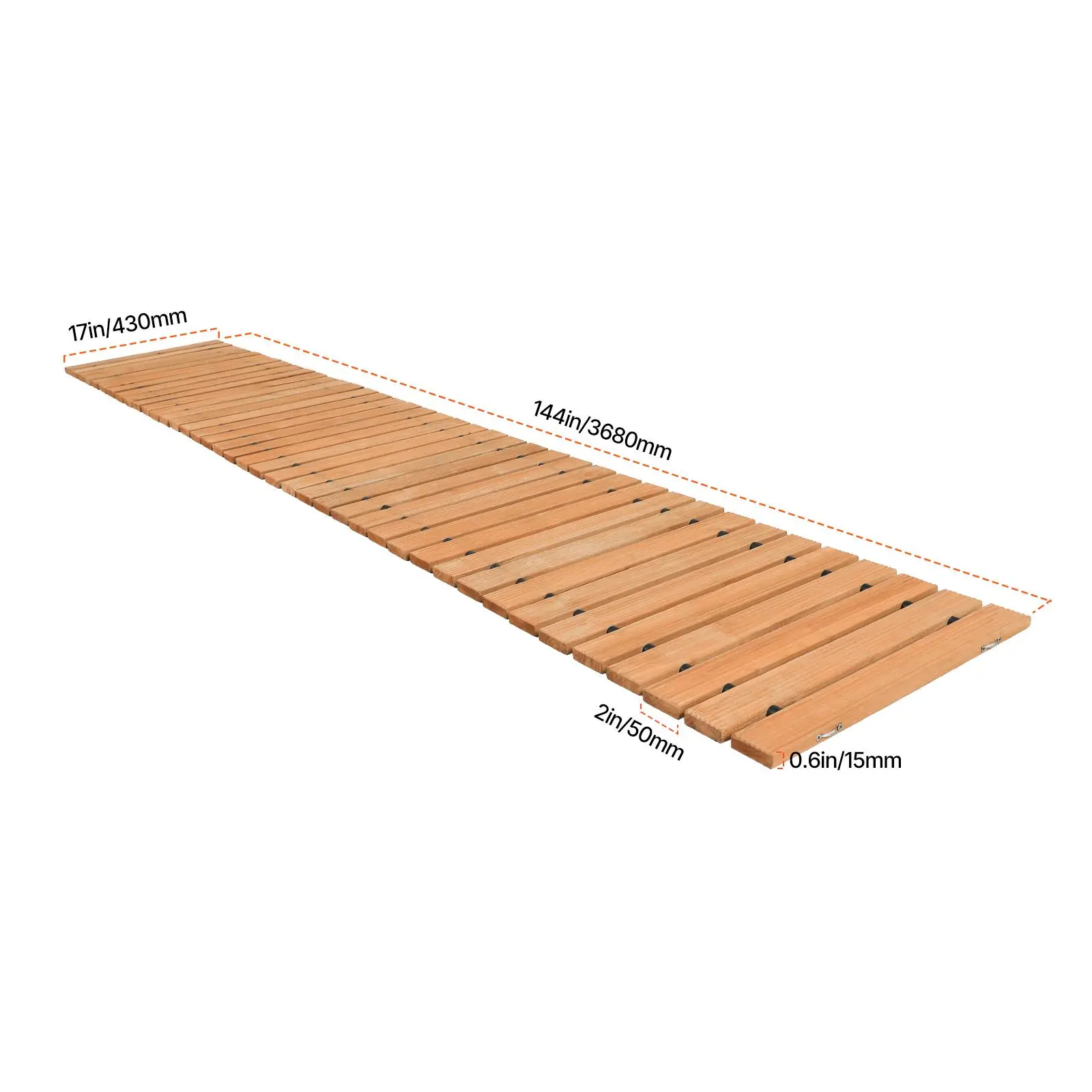 • Aesthetic Appeal: This wooden garden pathway measures 144 inches long and 17 inches wide, enhancing the visual attractiveness of any outdoor space while keeping your shoes clean and dust-free.