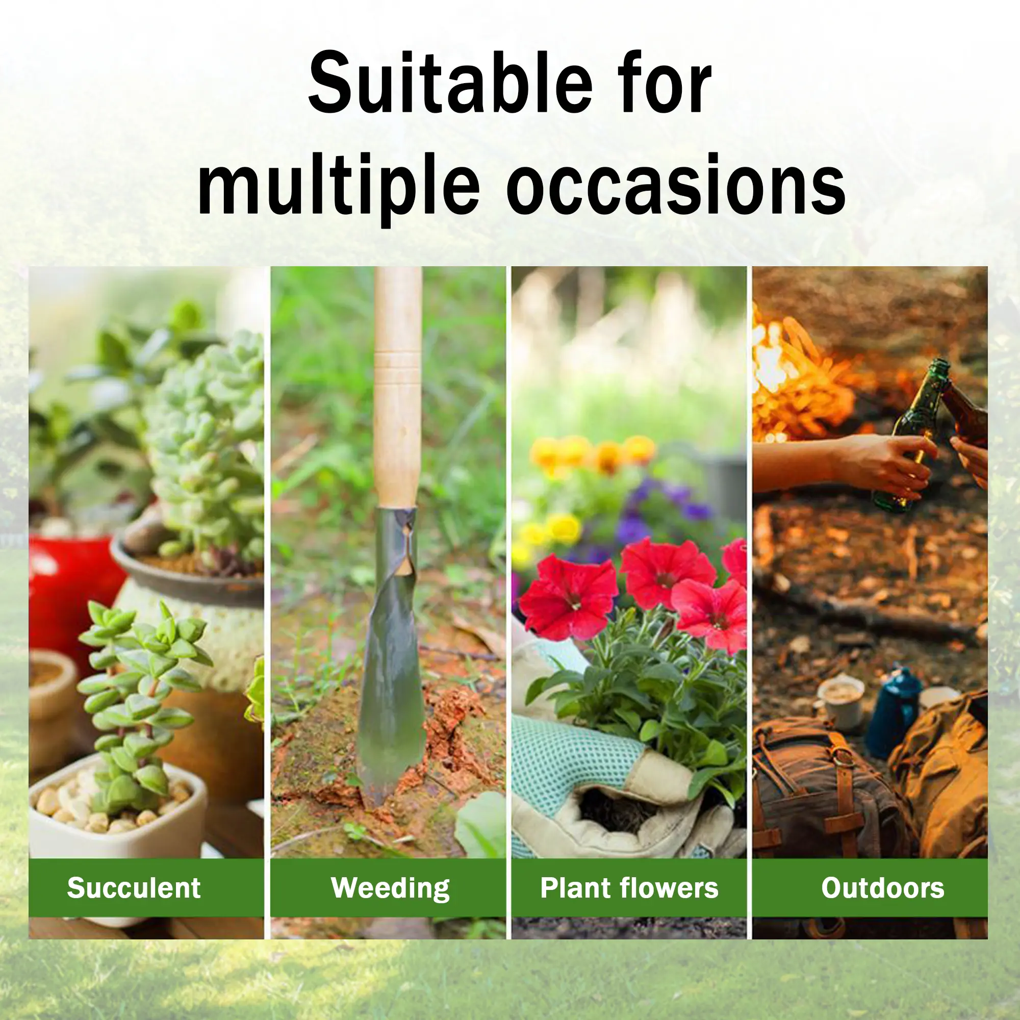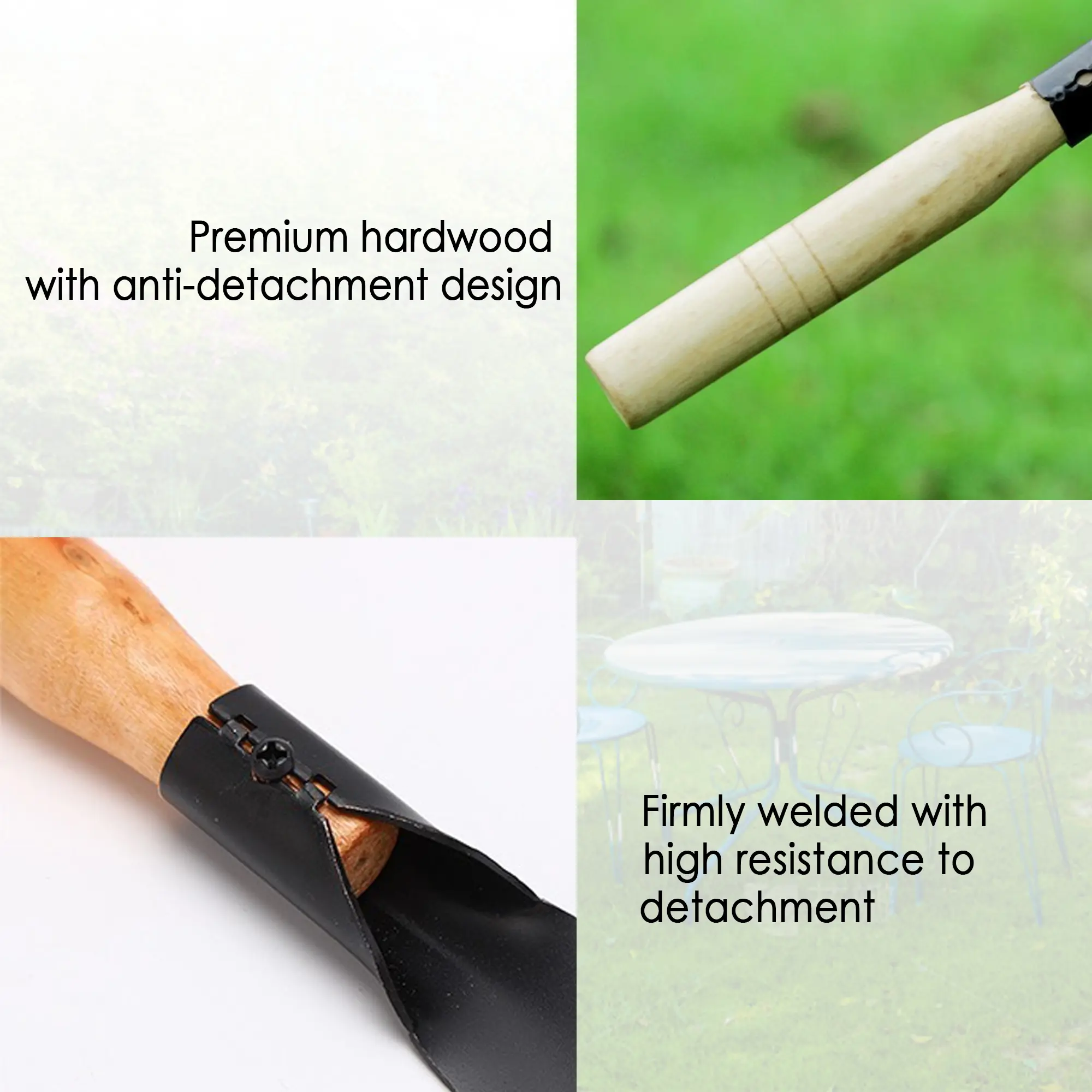 Anti-slip and does not hurt hands: Our gardening shovels come with anti-slip wooden handles, which can secure grip during use and reduce hand fatigue, making them ideal for versatile gardening tasks such as planting, digging, transplanting, and weeding