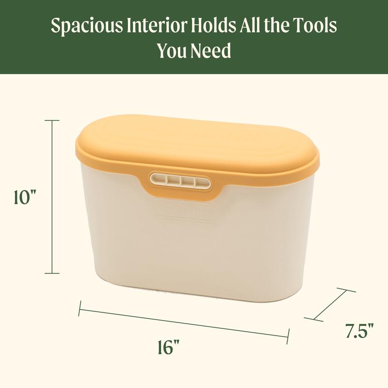 Your garden set up just got more convenient. Introducing the Vego Garden Tool Box! This sturdy toolbox hangs securely from the edge of your garden bed, and its hinged lid means your tools are never out of reach! Drainage holes in the bottom extend the life of your tools by allowing them to dry after use.