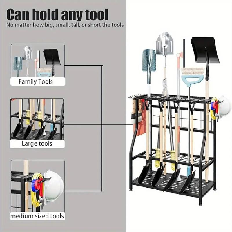 The package includes 1 x Portable Tool Organizer and 1 x Manual. The organizer is not only excellent for keeping tools in a storage area but can also be utilized in the kitchen for holding pots and bowls or in the garden for keeping shovels. The organizer features a three-layer storage design that optimizes space and accommodates more tools.