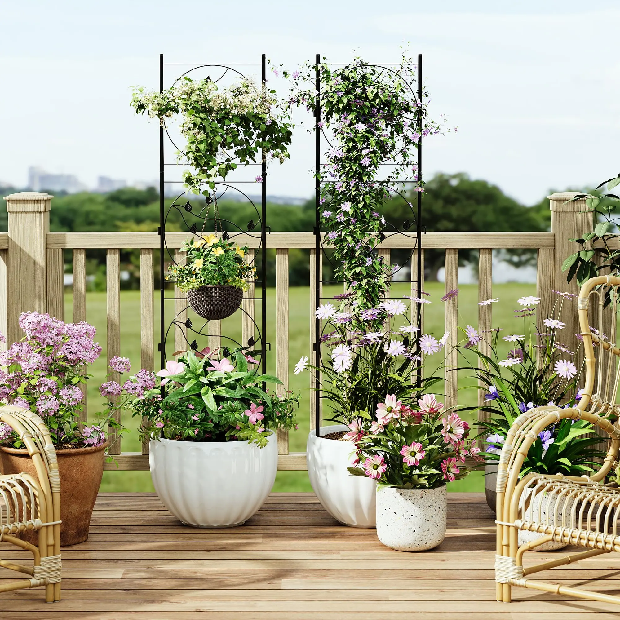 Versatile Metal Trellis for Climbing Plants Outdoor-Ideal for roses, cucumbers, ivy, and more, this plant trellis outdoor fits gardens, patios, or balconies. Its flexible design helps train plants upward, saving space while adding greenery.