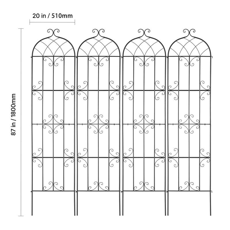 5. VEVOR Garden Trellis for Climbing Plants, 87 x 20 in, 4 Packs Rustproof Metal Garden Flower Trellis, Outdoor Climbing Rose Trellis Cucumbers Support, Decorative Clematis Trellis for Courtyards Lawns