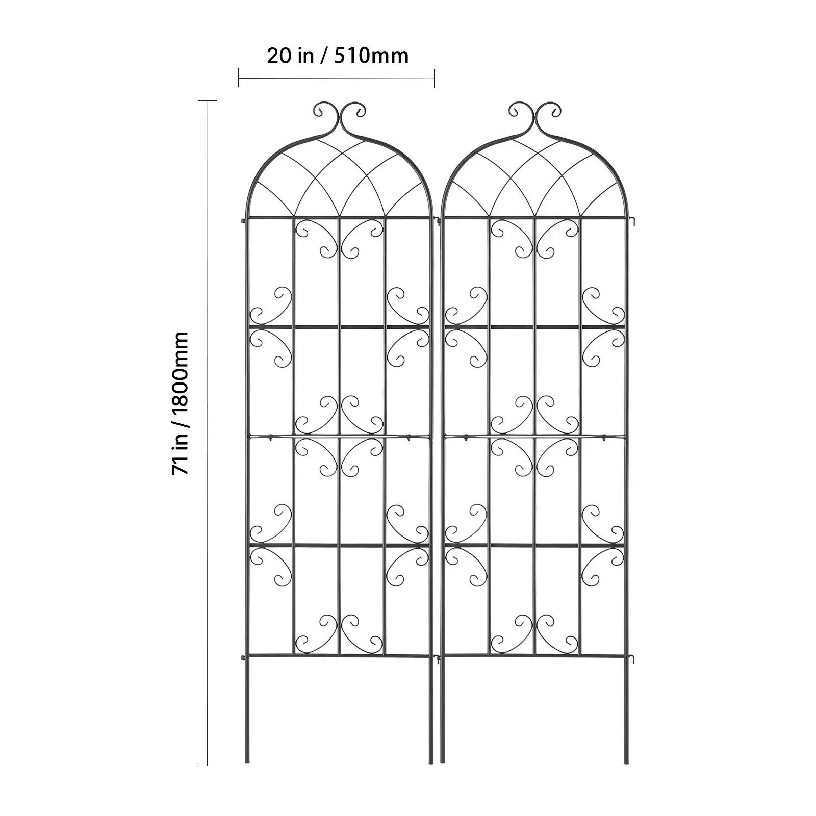 5. VEVOR Garden Trellis for Climbing Plants, TikTokShopBlackFriday, 71 x 20 in, 2 Packs Rustproof Metal Garden Flower Trellis, Outdoor Climbing Rose Trellis Cucumbers Support, Decorative Clematis Trellis for Courtyards Lawns