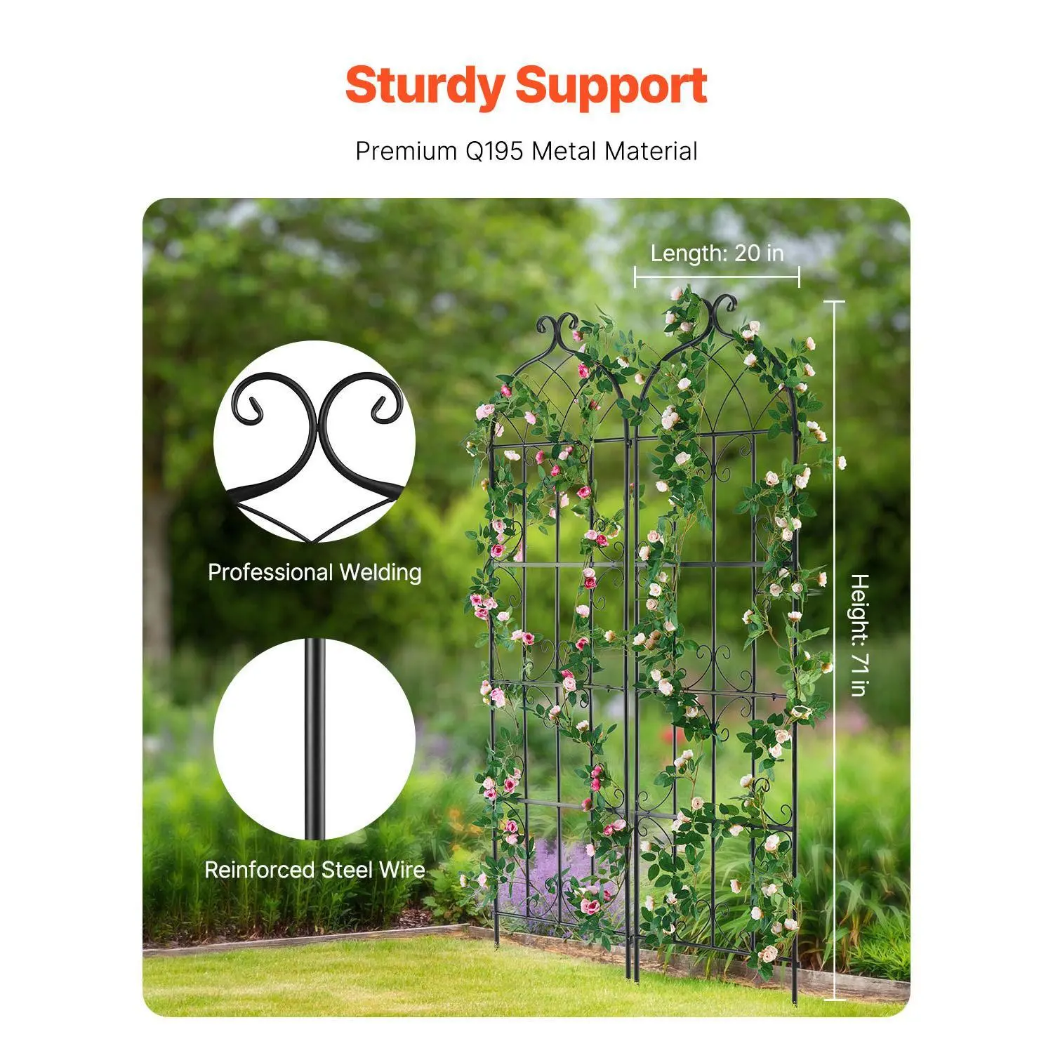 • Sturdy Metal Design: Our garden flower trellis is constructed from high-quality Q195 metal, expertly engineered to handle heavy plants, providing unwavering support for your vibrant ivy and flourishing rose bushes.