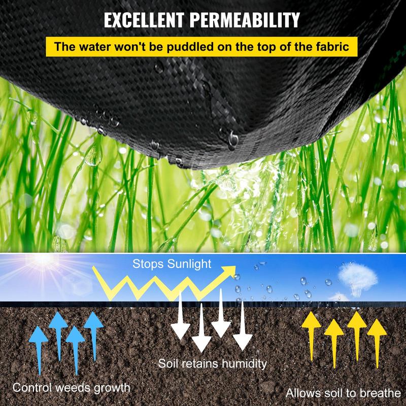 • High Permeability: Our heavy duty weed barrier is designed with excellent permeability. You never need to worry about the water will be puddled on the top of the material. Note: Woven layer should face up for better sun protection, weed barrier, and more vital water permeability.