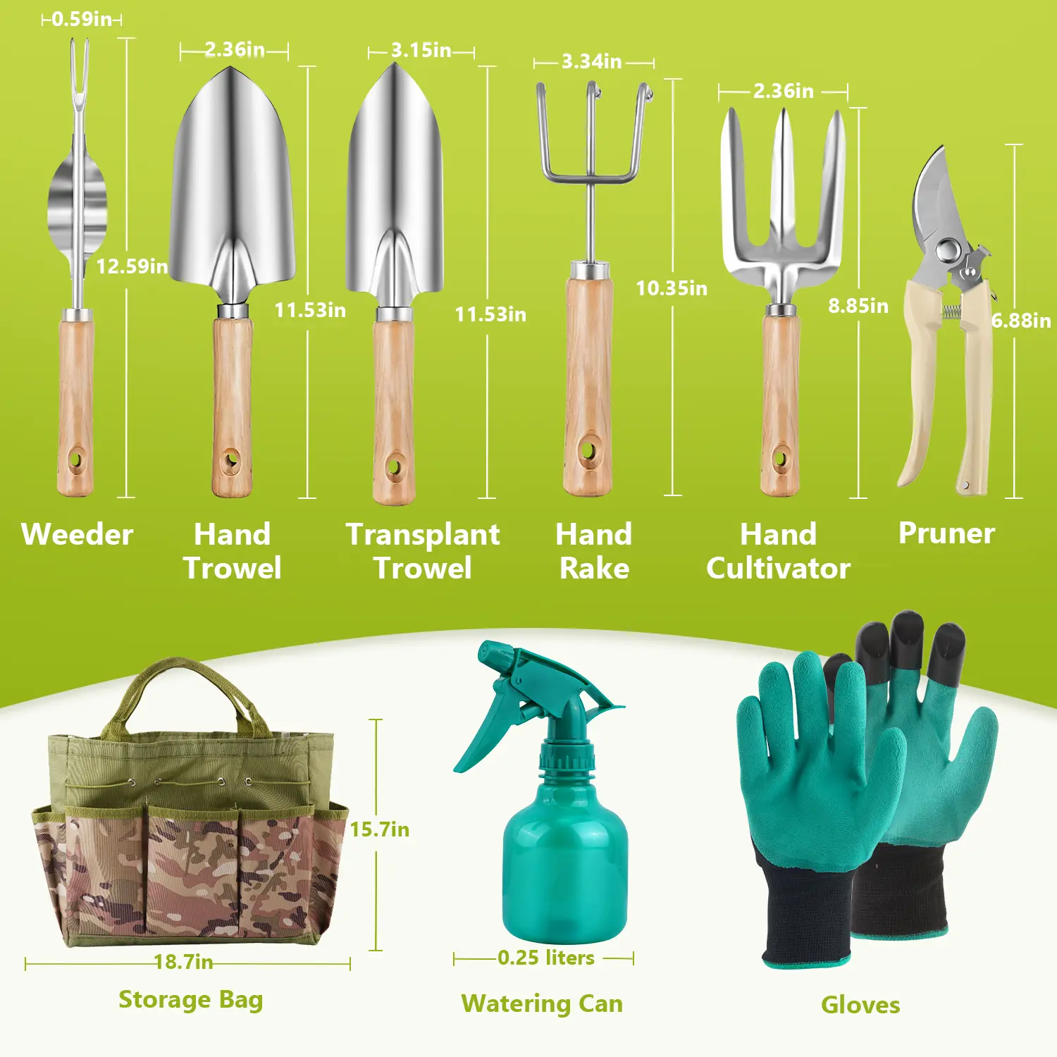 ·Comfortable Ergonomic Handle - The handle of this gardening set is made of beech wood. The natural and environmentally friendly material combined with the ergonomic handle design gives you a comfortable grip experience, which can reduce hand pain and fatigue during digging, weeding and planting.