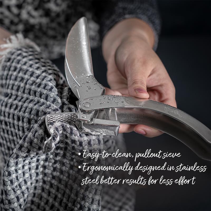 • Features a powerful lever and ergonomic handles. Operates effortlessly, requiring up to 60% less effort than other garlic presses. Ideal for users with limited dexterity. 🛠️