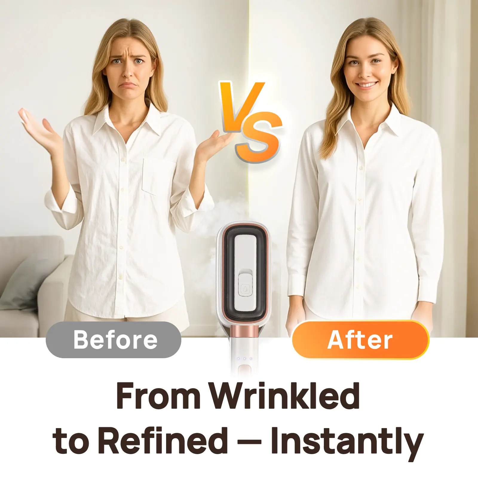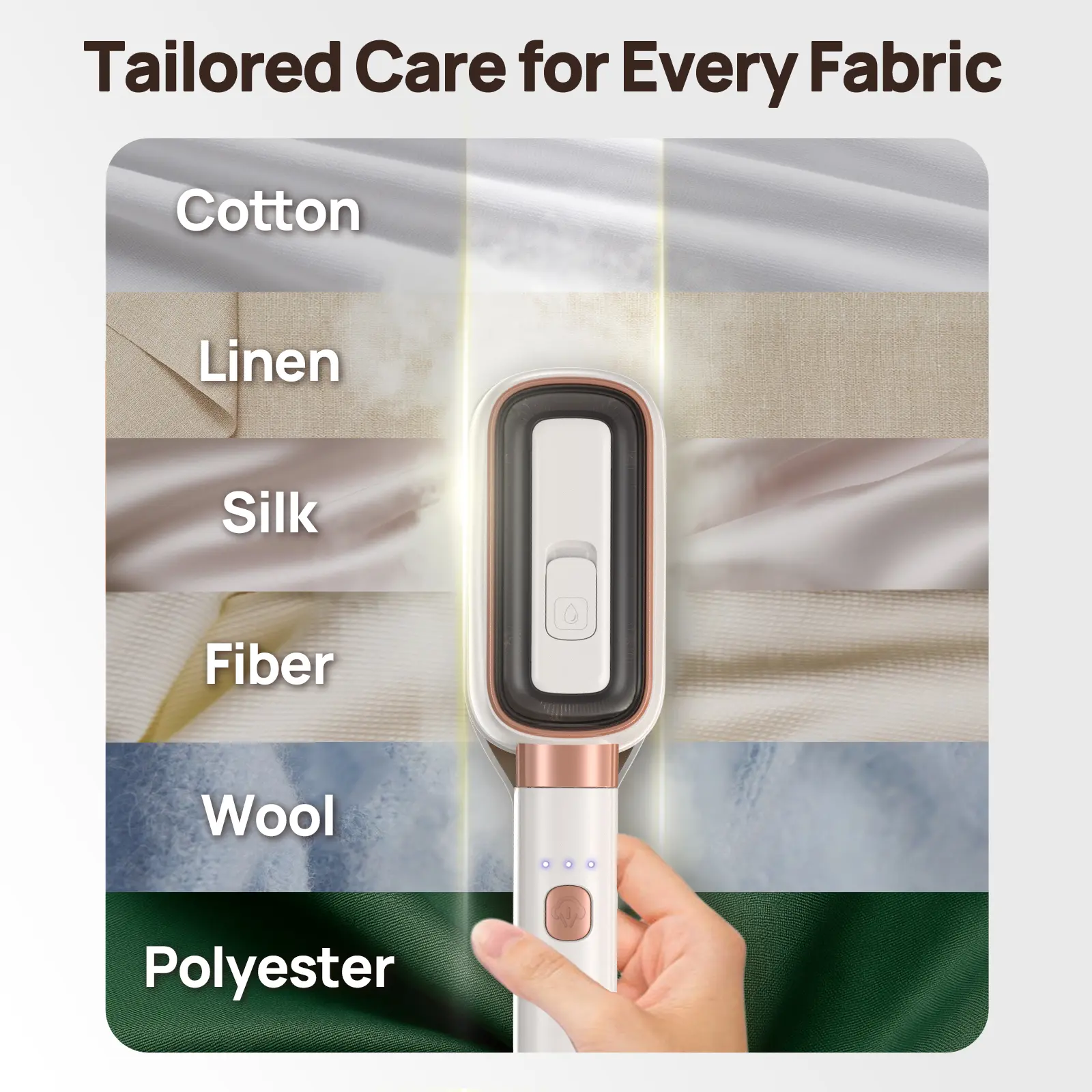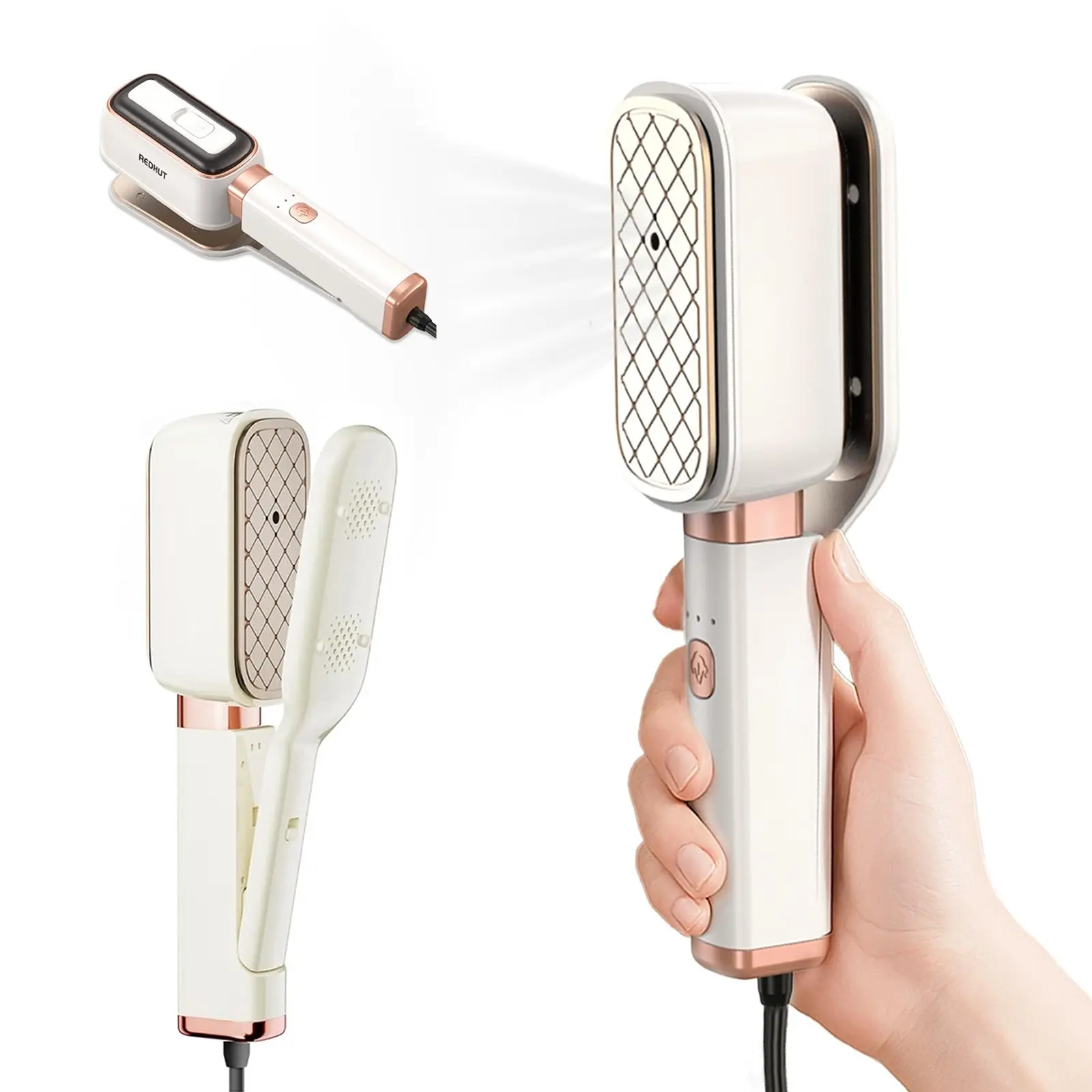 【3-in-1 Multi-Functional Garment Steamer & Iron】This 1000-watt travel garment iron combines three functions: clamp ironing, flat ironing, and hanging ironing. Its multi-functional design meets all your clothing care needs in various occasions. The press-type travel iron heats up quickly in just 25 seconds and features three ironing modes—low temperature, high temperature, and dry ironing. You can choose the appropriate mode according to the fabric to effectively remove wrinkles from various materials, such as shirts, wool, jackets, denim, curtains, silk, and furniture.