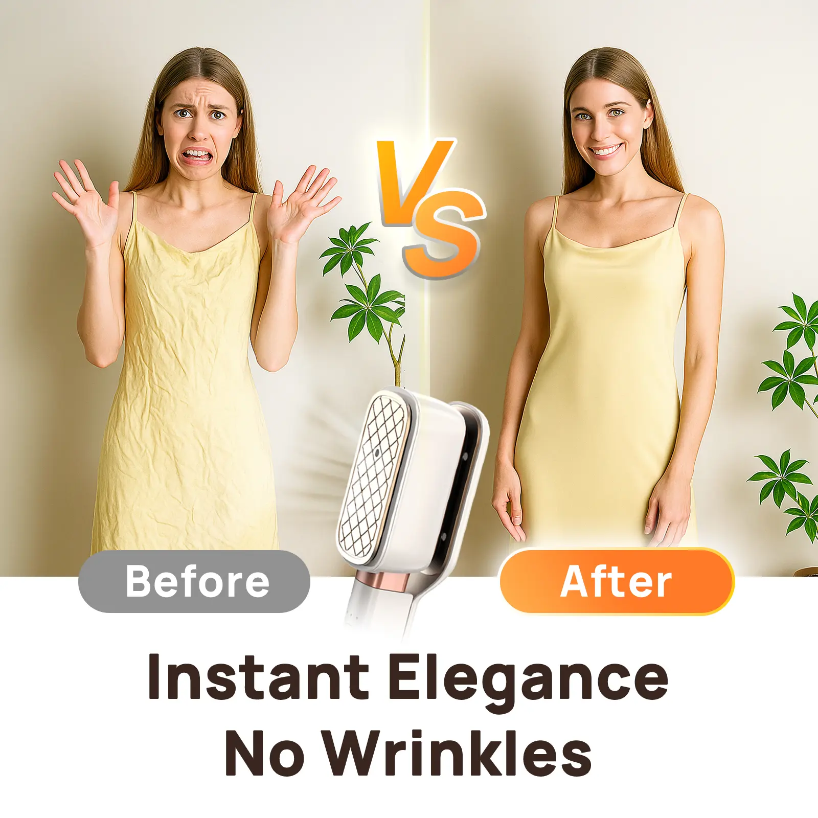 【Updated Design】This innovative travel handheld steam iron has a built-in easy-to-operate clamp, allowing you to iron with one hand, making it an essential helper for travel. Traditional irons cannot handle three-dimensional wrinkles, but this portable steam iron can be adjusted at a 180° angle, suitable for ironing complex parts such as suit collars and shirt cuffs. The unique anti-slip spike design of this garment steam iron combines heat and steam to eliminate stubborn wrinkles more quickly.