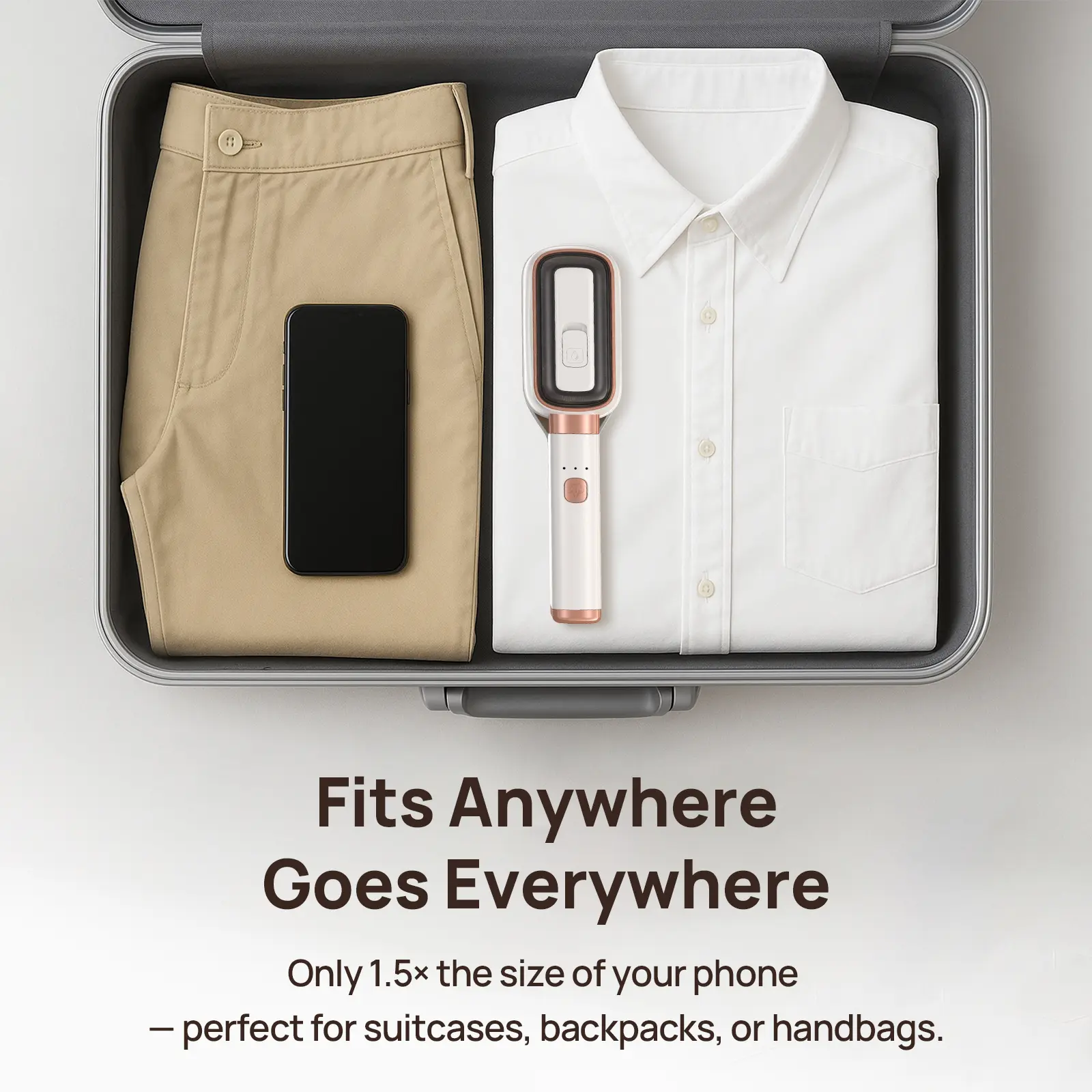 【Efficient Water Storage Capacity for Travel Iron】This travel garment steam iron is equipped with a 60ml water tank and has a steam output of 15g per minute, allowing for long-term use without frequent refilling, which is very suitable for quick ironing. The mini steam iron can continuously produce steam for 6-8 minutes. With a one-button design, it easily switches between dry and wet modes, making it convenient to use. Note: A small amount of water stains may occur during use, which is a normal phenomenon caused by residual steam condensation.