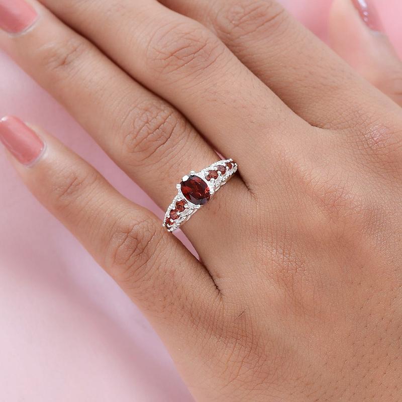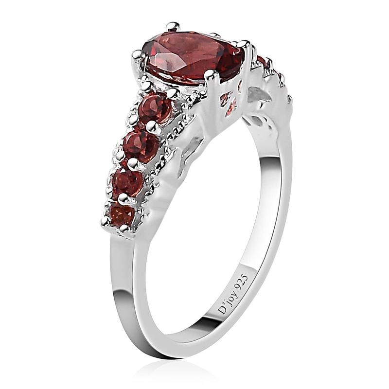 This garnet ring is crafted in sterling silver. This red garnet ring features an oval shaped gemstone in the center. The round gemstone highlights the beauty of the center gemstone. The garnet is a beautiful gemstone known for its deep red color and brilliance. This sterling silver ring provides a beautiful contrast to the deep red of the garnet. Highlights | GEMSTONE DETAILS: This fashion ring features beautiful garnets in the center. Each of these gemstones is held perfectly in prongs | METAL DETAILS: This garnet ring for women is crafted in sterling silver. This good quality metal is more durable and is used widely in jewelry. Sterling silver is a popular choice for jewelry makers because of its durability and versatility | DESIGN INSPIRATION: This is inspired by nine stone theme symbolizing nine years of togetherness in a relationship | COMFORT FIT: This garnet engagement ring has a smooth under gallery that slides the finger easily. The metal is for all skin types