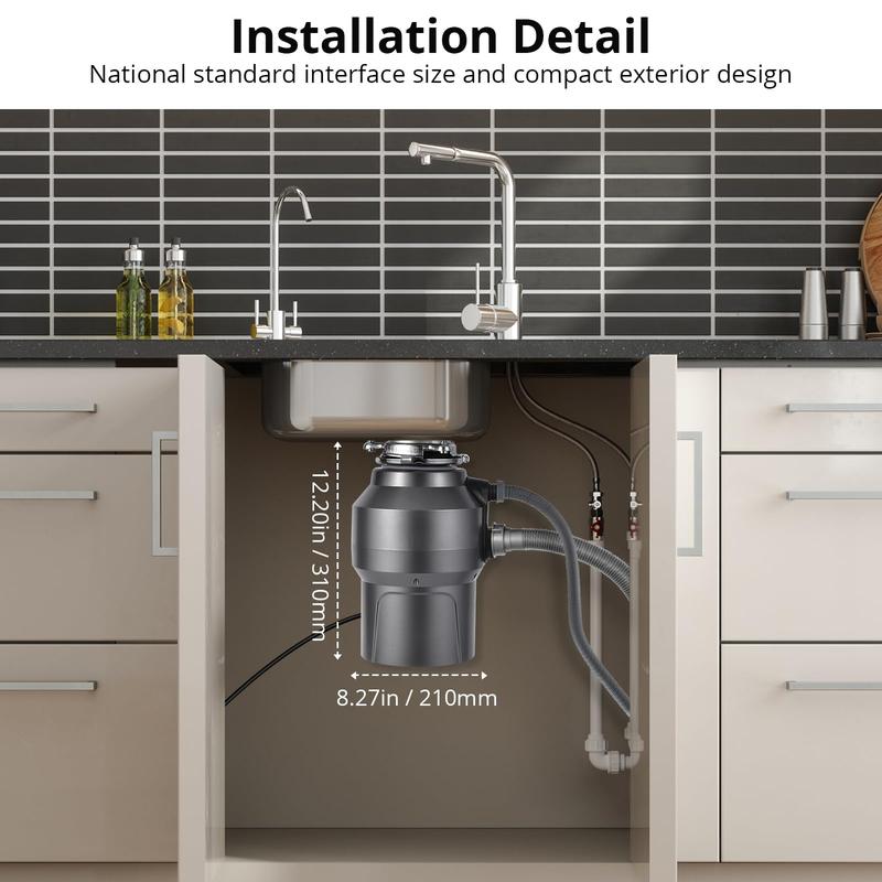· Quick and Easy Installation: Our garbage 3/4 hp disposal are designed with a quick installation program, simply follow our instruction manual or online video to complete the installation easily. No tools are required, wrench is included with the product and fits most 4.3-inch sink nozzles, providing you with a quick and easy installation experience.