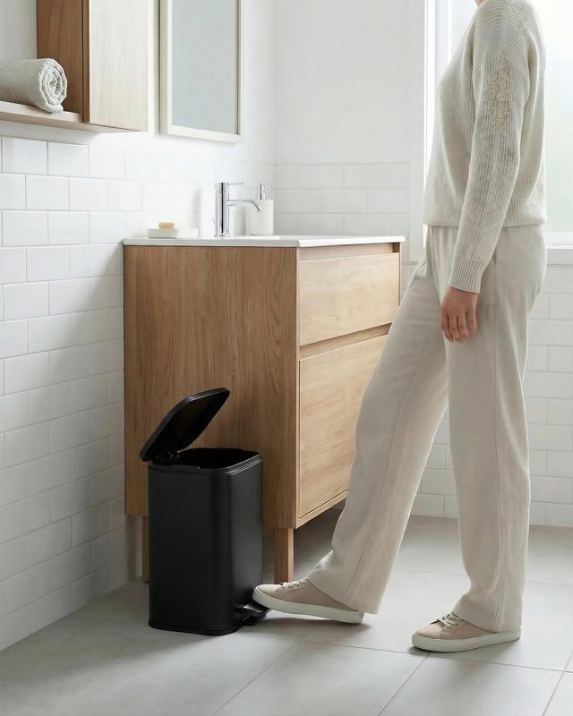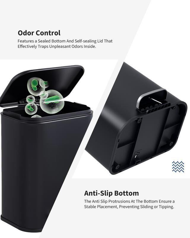 · Elegant & Durable Stainless Steel: Built from high-grade stainless steel, this kitchen trash can is rust-resistant, fingerprint-resistant, and easy to clean—keeping your space stylish and spotless with minimal effort. Perfect as a trash bin for living rooms, kitchens, or offices