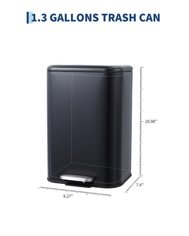 · Compact Yet Spacious Capacity: Designed with a 1.3-gallon capacity, this waste container provides ample storage without taking up excess space—ideal as a bathroom trash can, kitchen trashcan, or office waste basket to meet your daily disposal needs