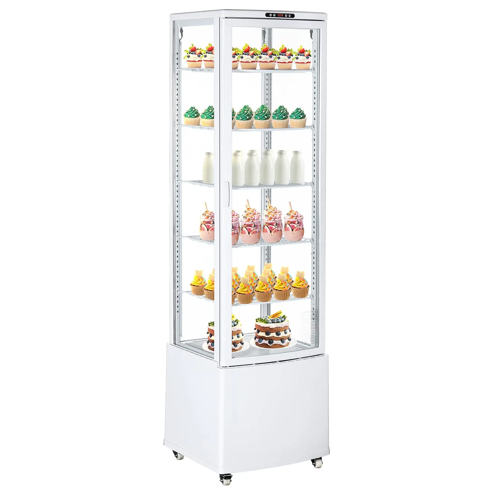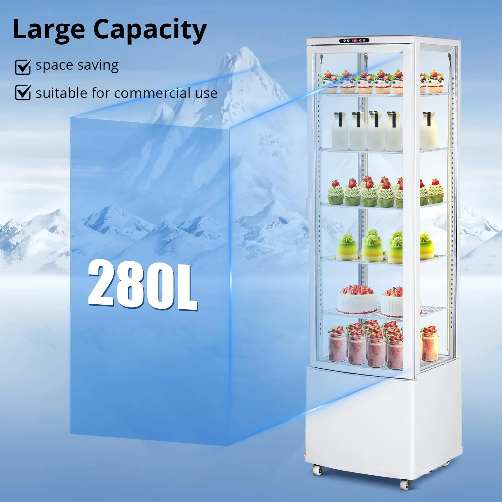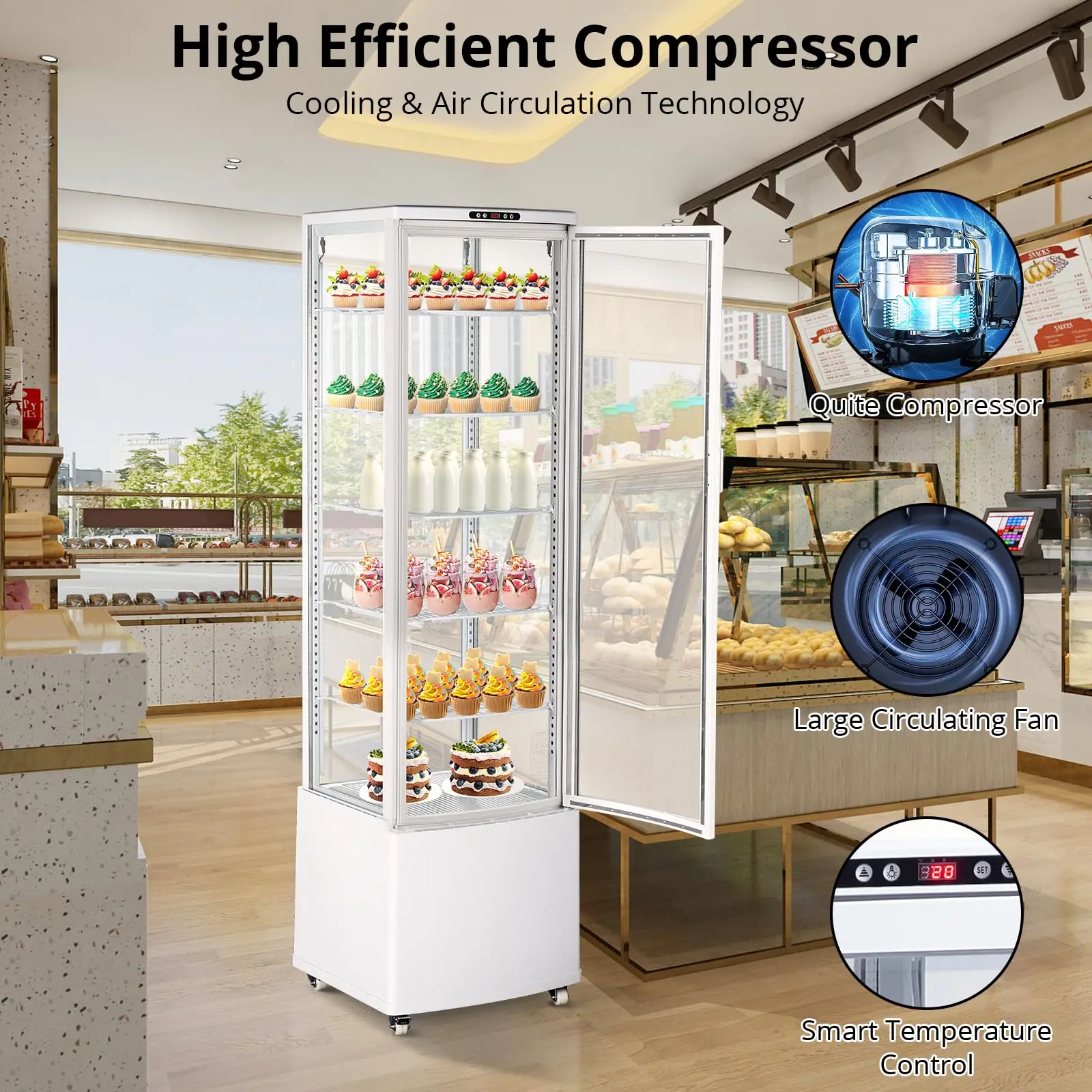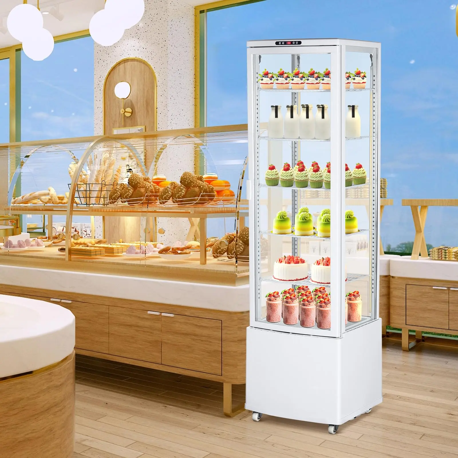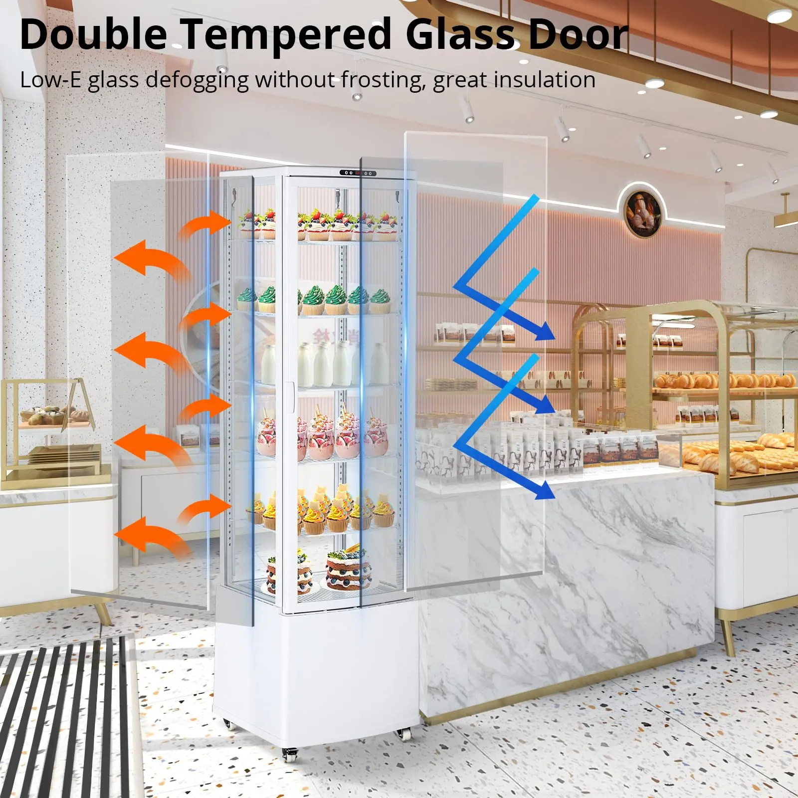 · Efficient use of Space: Designed to save space, this glass door display fridge can display desserts, bagels, pastries, beverages, yoghurts and fruits to enhance your shop's appeal. The compact size makes it perfect for commercial spaces such as bakeries, cafes and coffee shops.