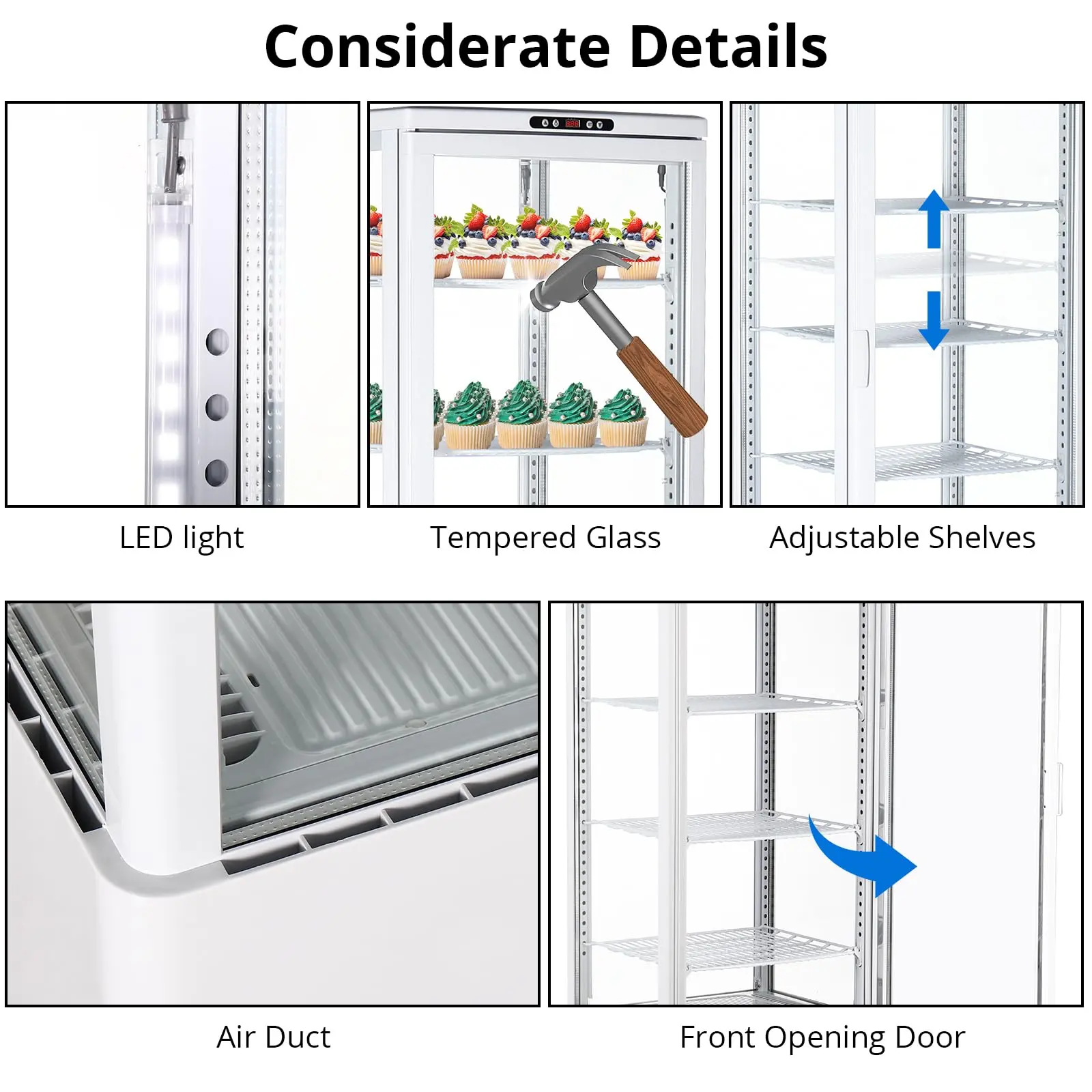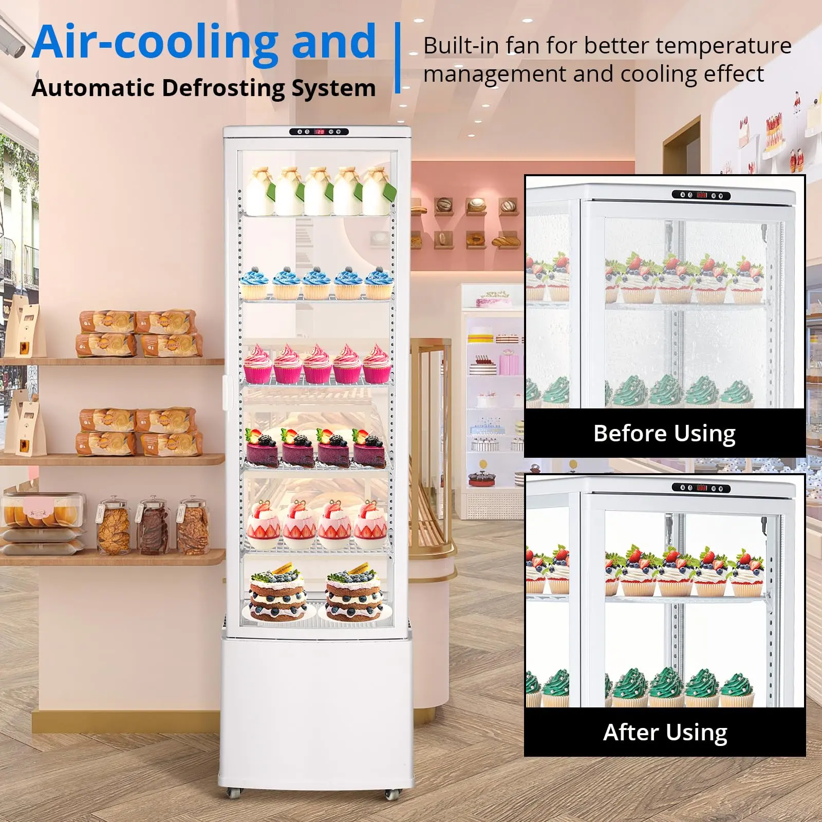 · Freshness and Anti-Fog: Equipped with a vented cooling system and automatic defrost, this display refrigerator maintains temperatures between 35.6-53.6°F to keep items fresh. Designed with double-sided vents and full double-paned tempered glass, it effectively eliminates condensation on the glass and provides excellent insulation to ensure your display items are clearly visible.