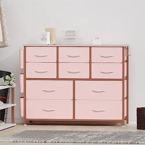 【Garvee】10 Drawer Pink Dresser for Kids Room, Freestanding Storage Cabinet with Wood Top for Girls Bedroom or Playroom