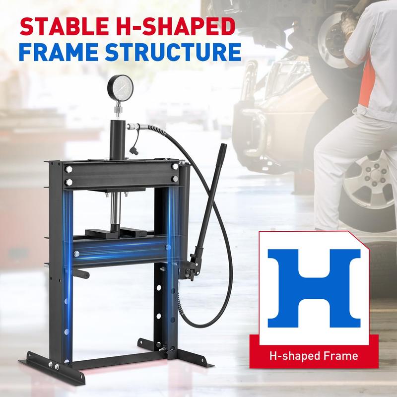 GARVEE Hydraulic Press 10 Ton, Hydraulic Shop Press, H Frame Benchtop Hydraulic Press with 2 Press Plates, Garage Floor Shop Press, Adjustable Work Table Height, Heavy Duty Press, Black