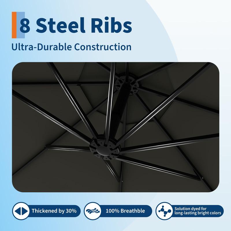 · 【UV50+ High-Quality Fabric】 Our 10ft offset patio umbrella is crafted from premium polyester fabric, offering superior UV protection and water resistance. Easy wiping after rain reduces cleaning burden, ensuring long-lasting vibrant colors that keep your umbrella outdoor patio looking fresh and stylish for long time.