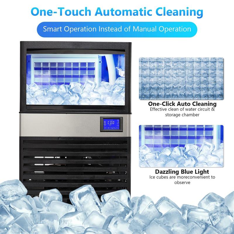 · ✔️ Versatile for Any Venue:Ideal for restaurants, bars, hotels, and home kitchens, this freestanding/undercounter ice machine fits anywhere with water/power access.Note: Let unit stand upright 24hrs before first use for optimal performance.