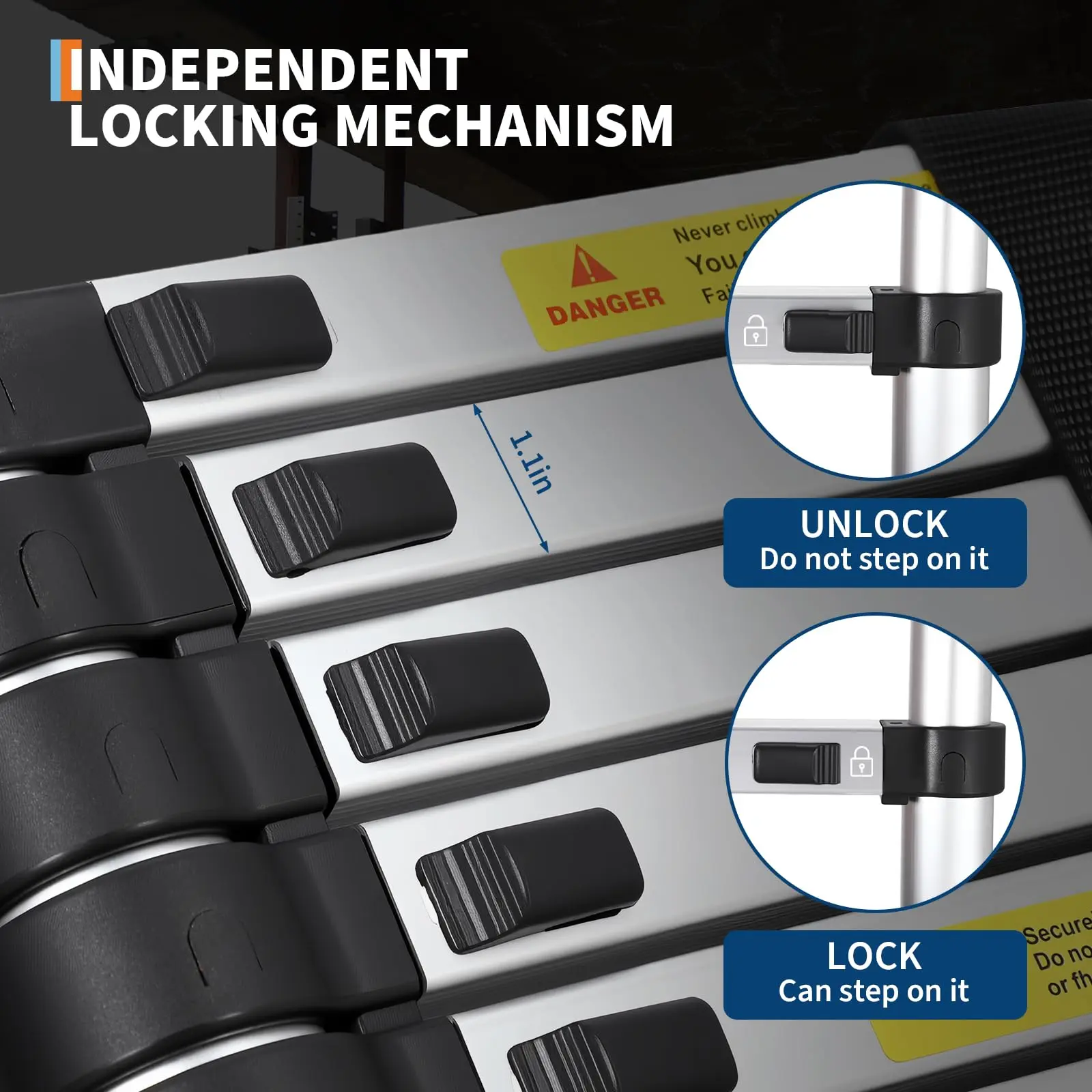 · 【Adjustable & User-Friendly Design】Featuring quick-release locks for 1-foot incremental height adjustments, this collapsible ladder ensures a secure, custom fit with anti-pinch technology for smooth operation; textured treads provide slip-resistant climbing on tile, wood, or concrete, ideal for indoor projects or RV setups.
