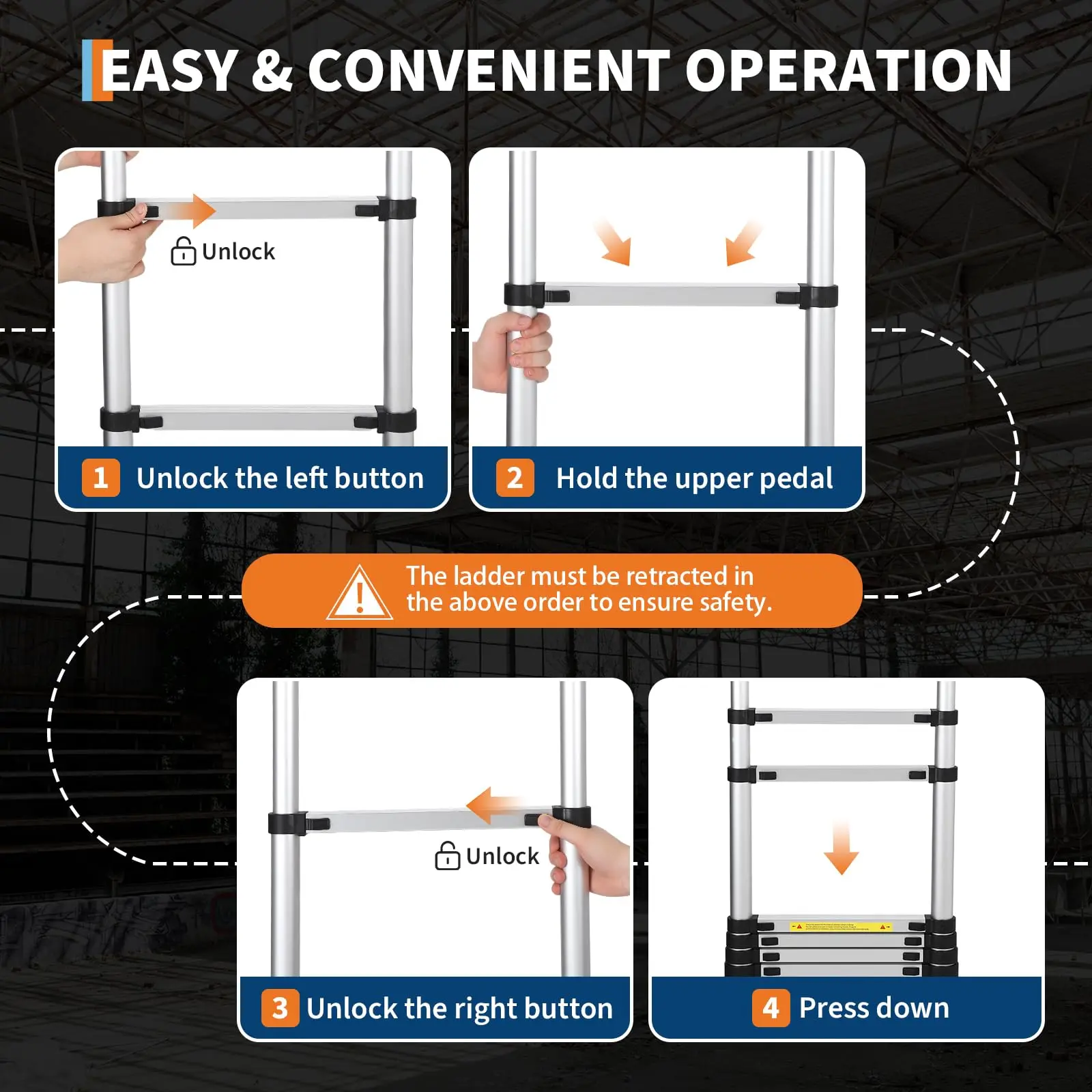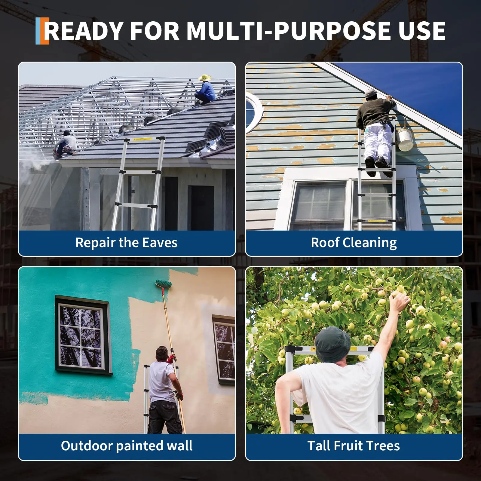 · 【Versatile Multi-Scenario Use】This telescoping ladder excels in diverse applications: from home chores like window washing and Christmas light hanging to RV repairs, outdoor tree pruning, and warehouse inventory—functioning as a leaning or straight extension ladder for all your DIY and professional needs.