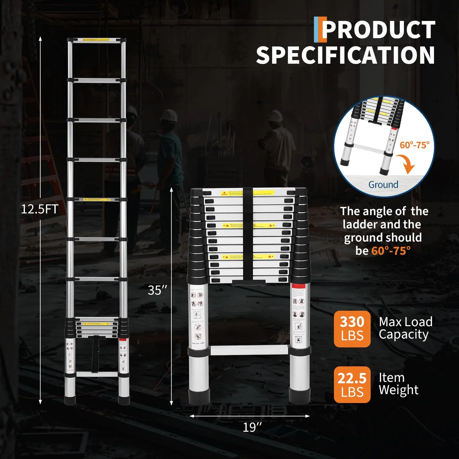 · 【Durable Heavy-Duty Construction】Crafted from premium industrial-grade aluminum alloy, this 12.5FT extension ladder withstands rigorous use, resisting bending and corrosion while handling 330LB loads effortlessly—perfect for frequent home renovations, contractor jobs, or demanding outdoor work environments.