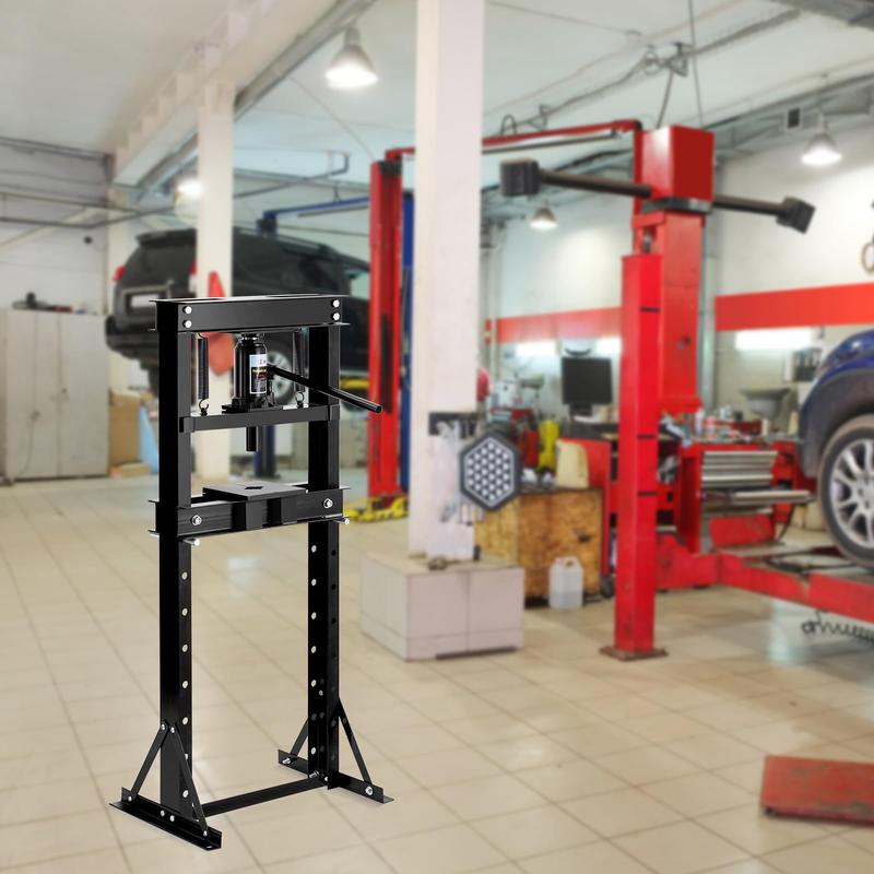 · --Robust Craftsmanship: Made from sturdy carbon steel, this H-frame shop press features a powder-coated finish that resists corrosion and wear. Its robust construction ensures longevity, making it a dependable addition to any garage or workshop for years
