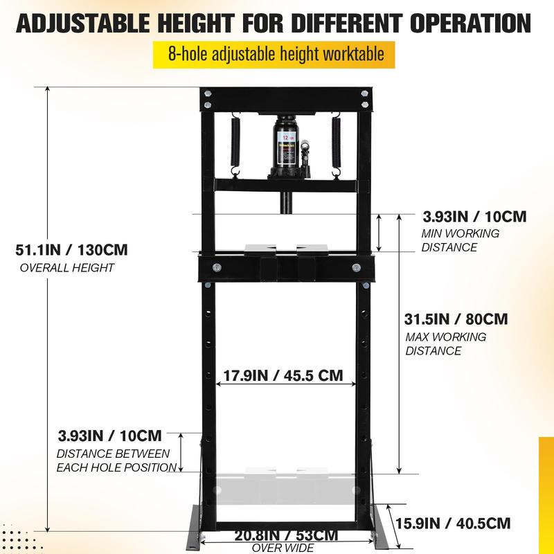 · --Excellence in Every Job: Experience the 12 ton hydraulic press, perfect for heavy-duty tasks like automotive repairs, metal fabrication, and maintenance. This shop press delivers reliable performance and exceptional results every time