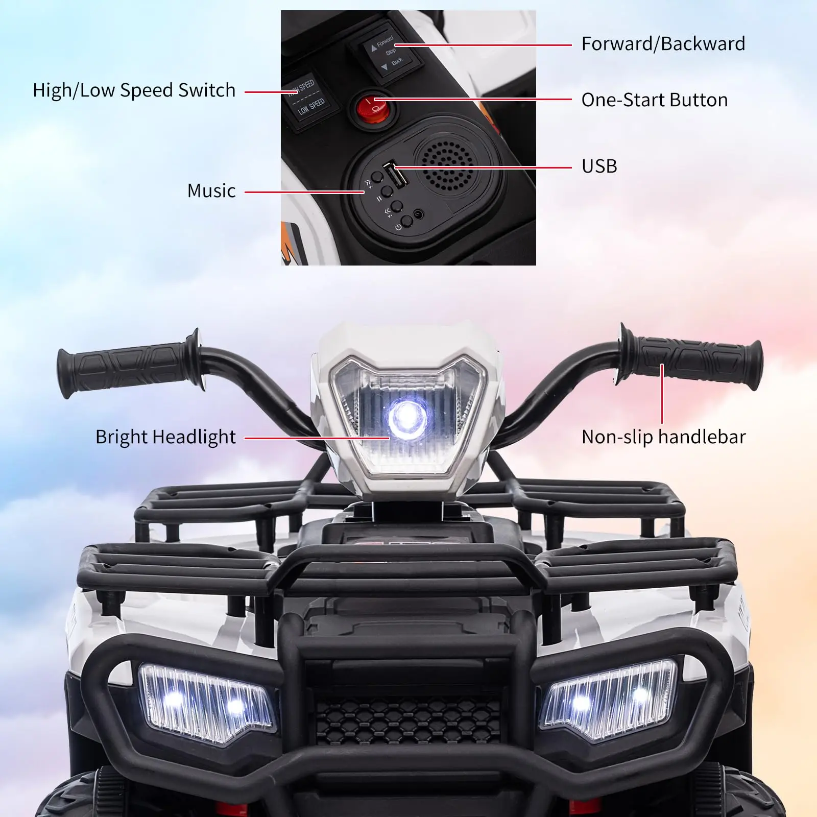 · User-Friendly Operation:Designed for young drivers, our electric ATV is incredibly easy to operate. Simply turn on the power and press the start button to get going! With dual gear options for speed control, children can easily move forward and backward using buttons, while the handlebars allow for smooth steering. Kids will quickly master their driving skills for a fun and relaxed experience.