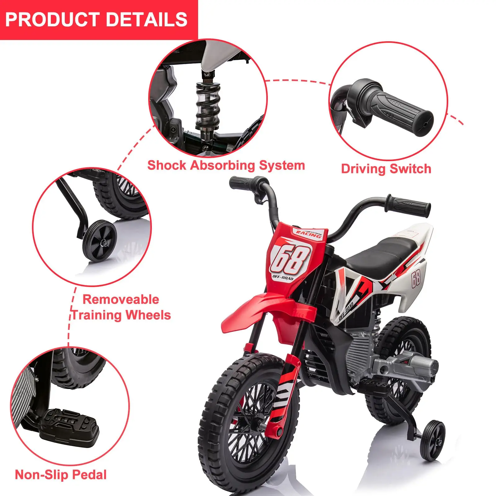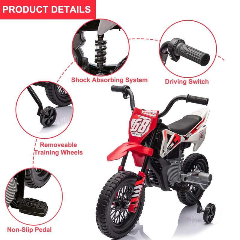 · SAFETY FIRST: This motorcycle for kids is equipped with a shock-absorbing spring suspension that minimizes impact while riding, along with 2 training wheels for added stability, ensuring a smooth and safe experience for your child.