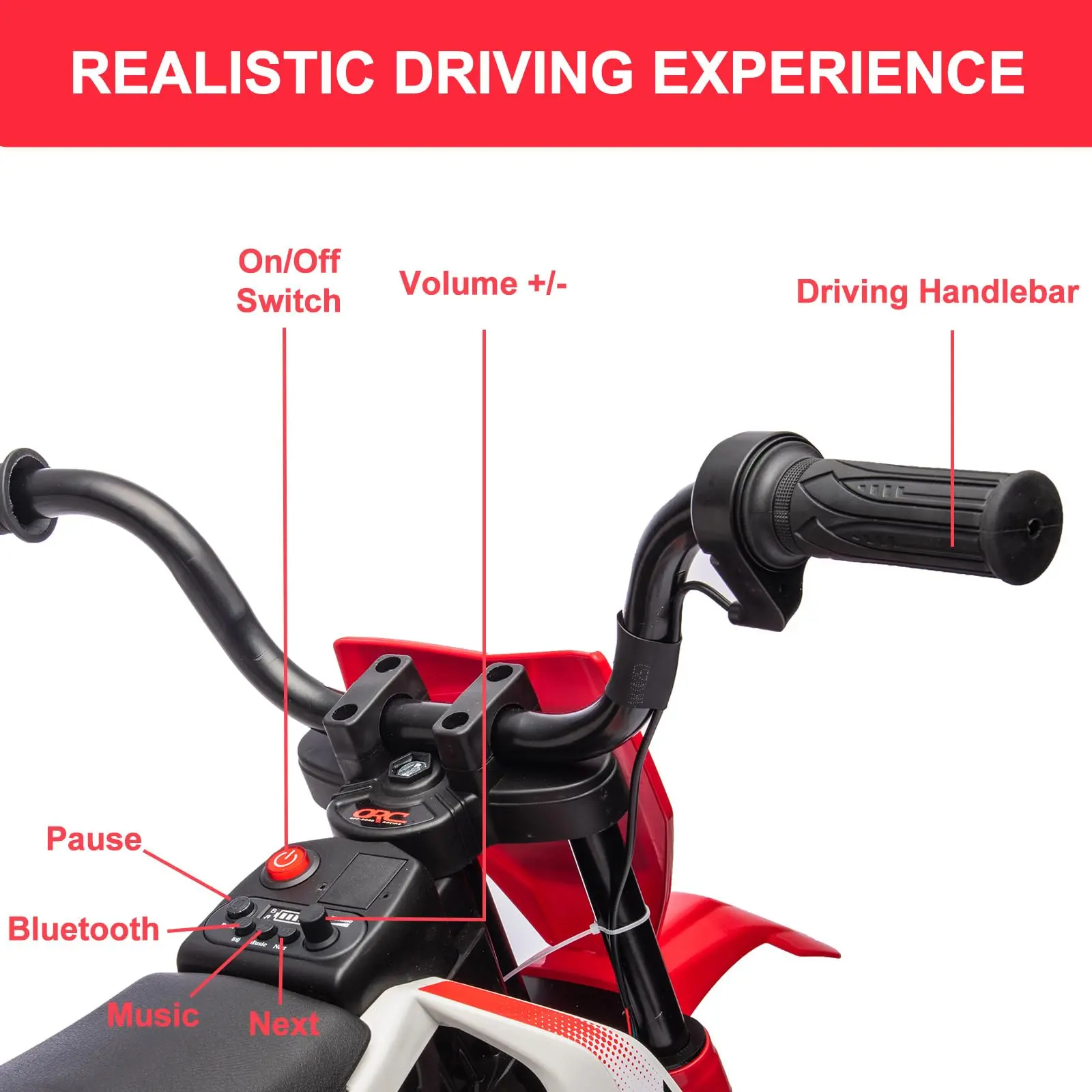 · SIMPLE TO RIDE: Just one button to start! Kids can easily drive the electric motorcycle forward and adjust speed by twisting the right handlebar. With built-in music and smart connectivity, they can enjoy tunes while riding the kids dirt bike, perfect for ages 4-8!