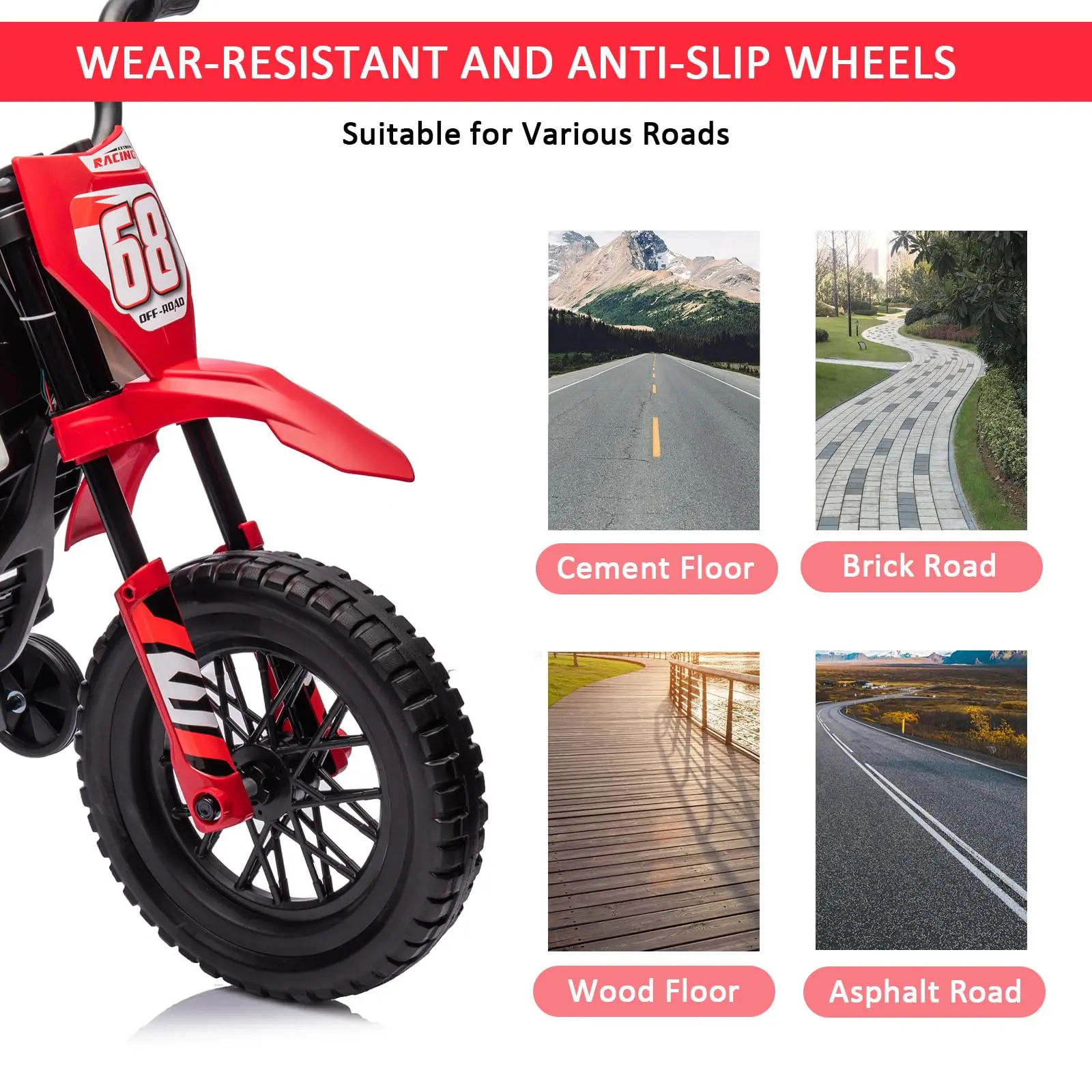 · REAR-WHEEL DRIVE: This electric dirtbike features dual 25W motors for strong rear-wheel drive. Its durable, wear-resistant wheels enable it to traverse various surfaces, including asphalt, brick, concrete, and wooden boards.