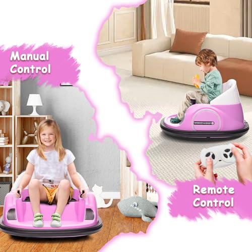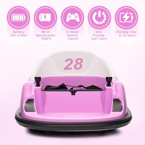 GARVEE 12V Electric Ride-On Bumper Car for Toddlers and Young Children with Remote Control, Battery Display, 360° Spin, LED Lights, Music, MP3, USB, Available in Multiple Colors Including Pink, Orange, Green, Blue, and Red