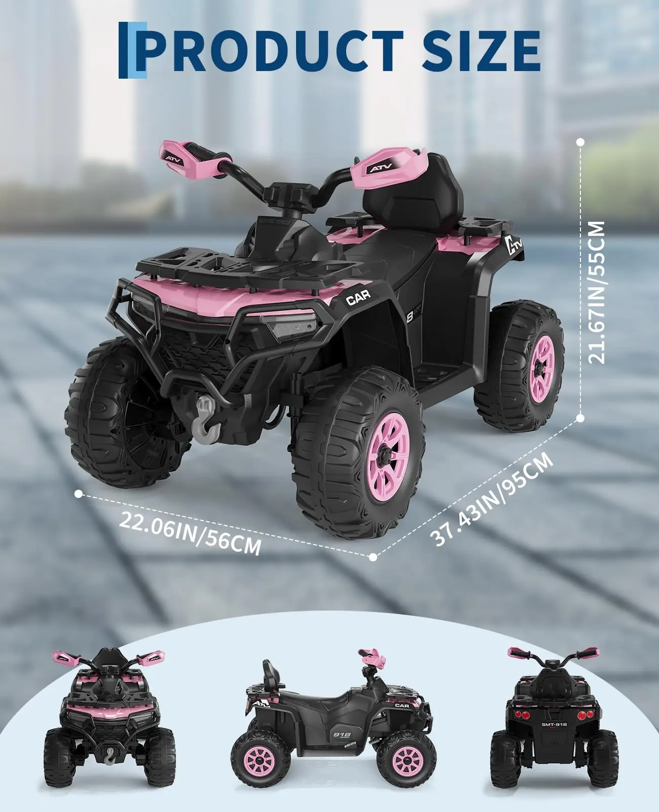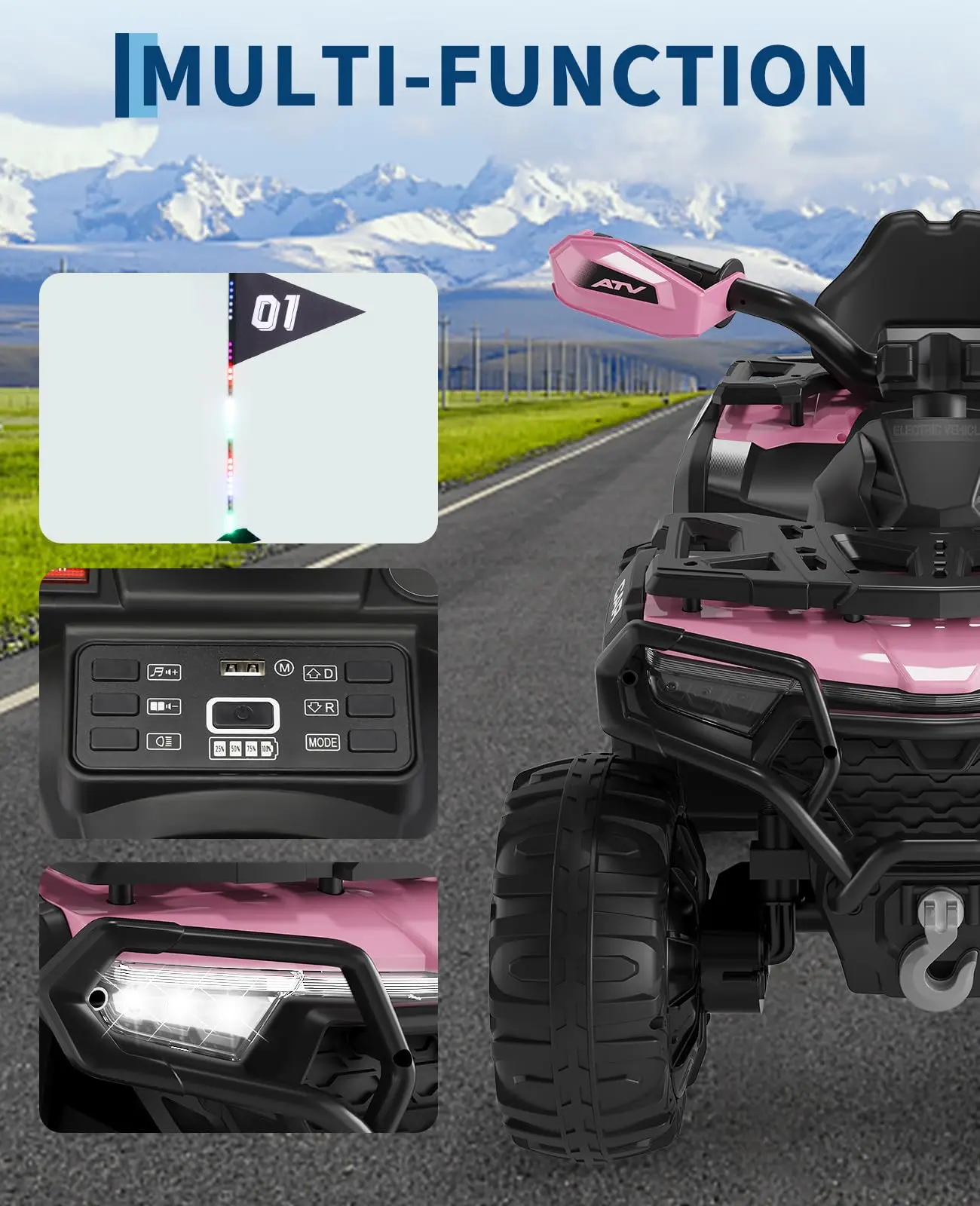 GARVEE 12V Electric Ride On Car for Ages 3-8 with 2x45W Motors, Remote Control, LED Lights, Music Player, and Emergency Brake - Battery Powered Vehicle in Pink for Toddlers and Older Children