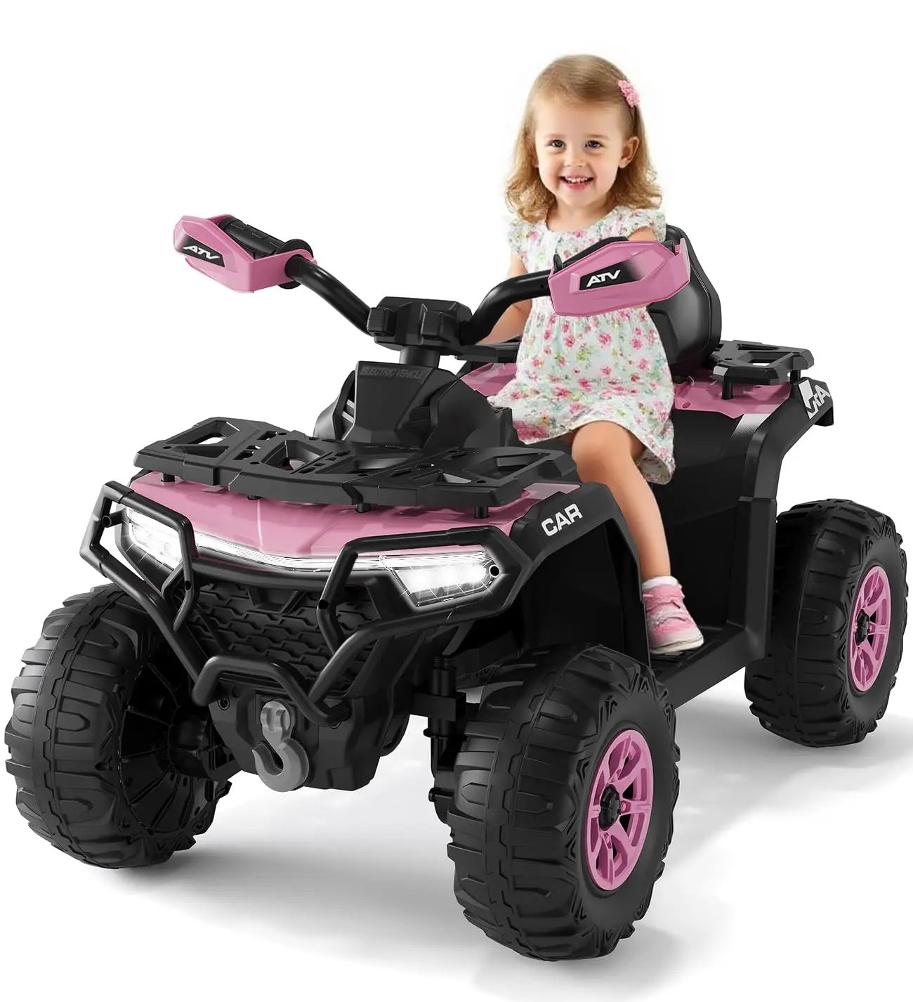 5. GARVEE 12V Electric Ride On Car for Ages 3-8 with 2x45W Motors, Remote Control, LED Lights, Music Player, and Emergency Brake - Battery Powered Vehicle in Pink for Toddlers and Older Children