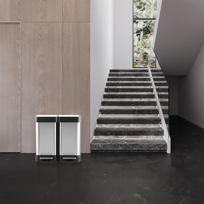 【GARVEE】13-gallon dual compartment trash and recycling bin, soft-close lid, stainless steel pedal, space-saving design for home/office (50 l 2 x 25 l, without bucket)