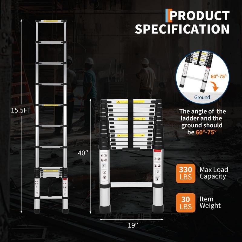 · 【Heavy-Duty Construction】3.15" diameter high-grade aluminum alloy tubes resist bending under load, with a safe load-bearing capacity of up to 330 pounds. Built to withstand 10,000+ extension cycles - ideal for contractors and frequent home renovations.
